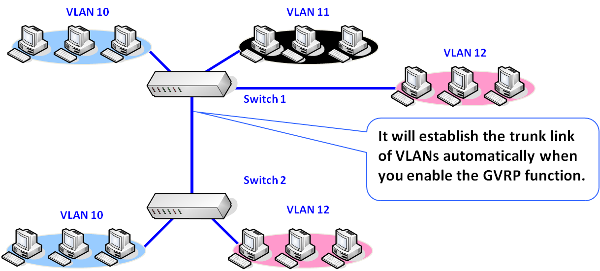 The GVRP Bridge Protocol Data Units (GVRP BPDUs) are able to advertise static VLANs to other switches in the network. Any device that is GVRP-enabled can dynamically join the advertised VLAN by receiving the advertisements.