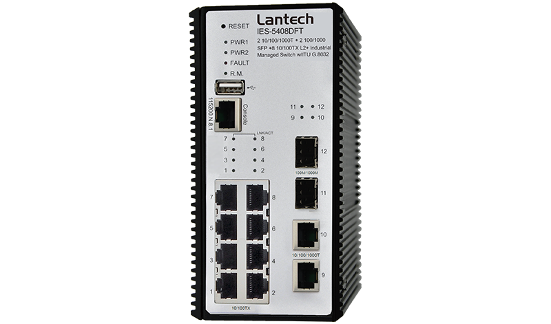 2 10/100/1000T + 2 100/1000 SFP + 8 10/100TX L2+ Industrial Managed Ethernet Switch w/ Enhanced G.8032 Ring