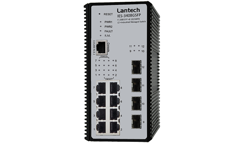 8 10/100/1000T + 4 Dual Speed SFP L2+ Industrial Managed Ethernet Switch w/ Enhanced G.8032 Ring