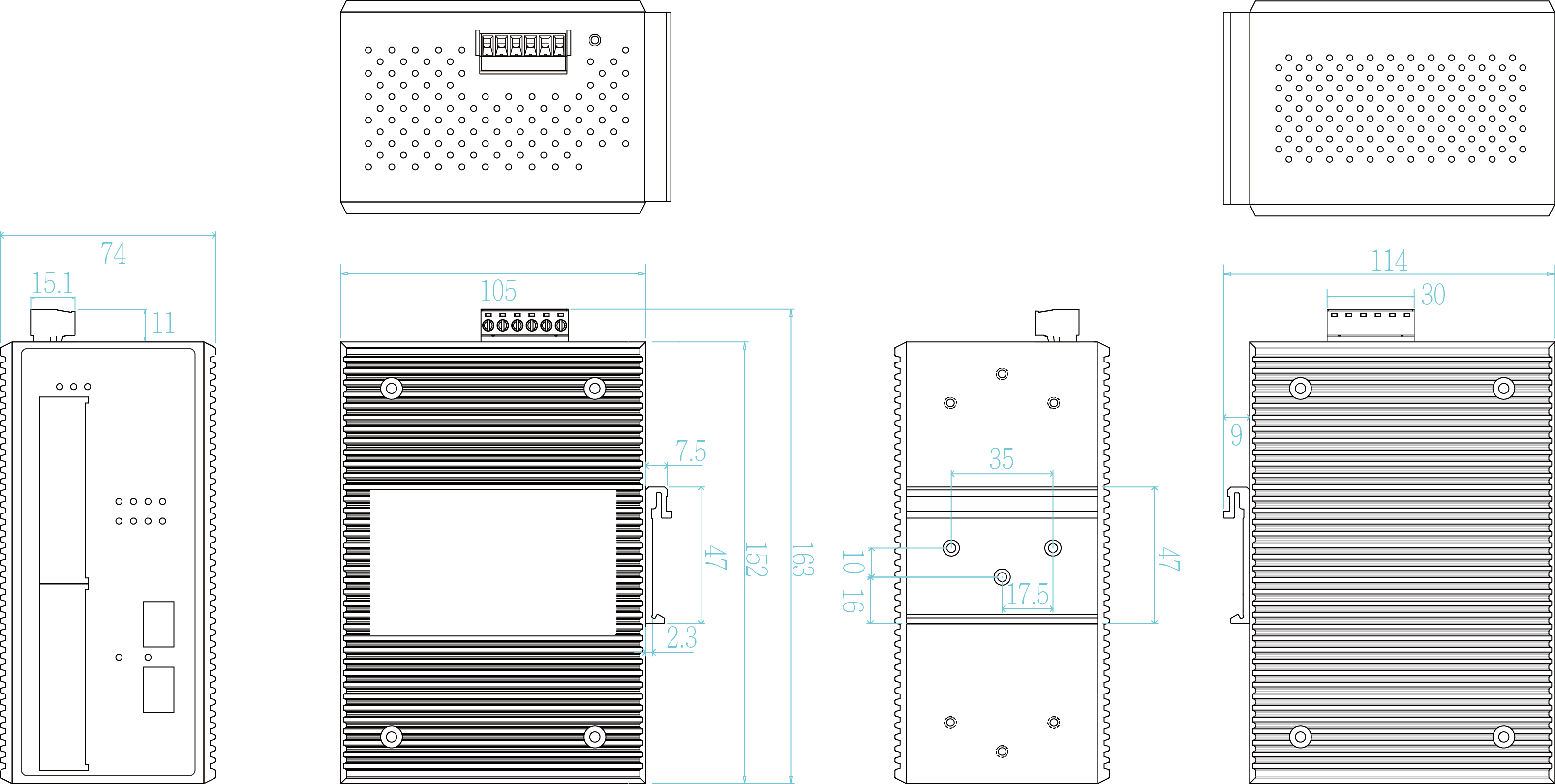 - IP30 metal housing with DIN rail and Wall-mount** design