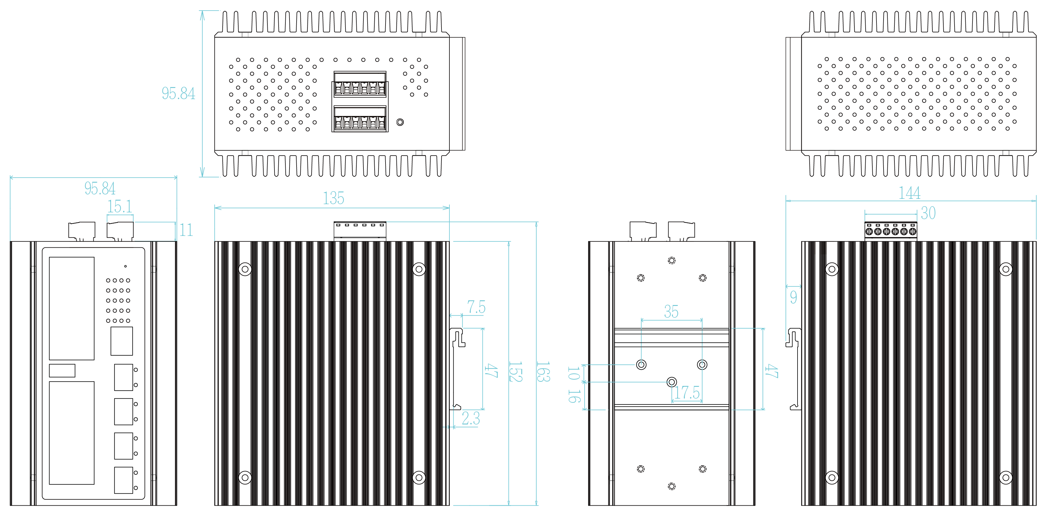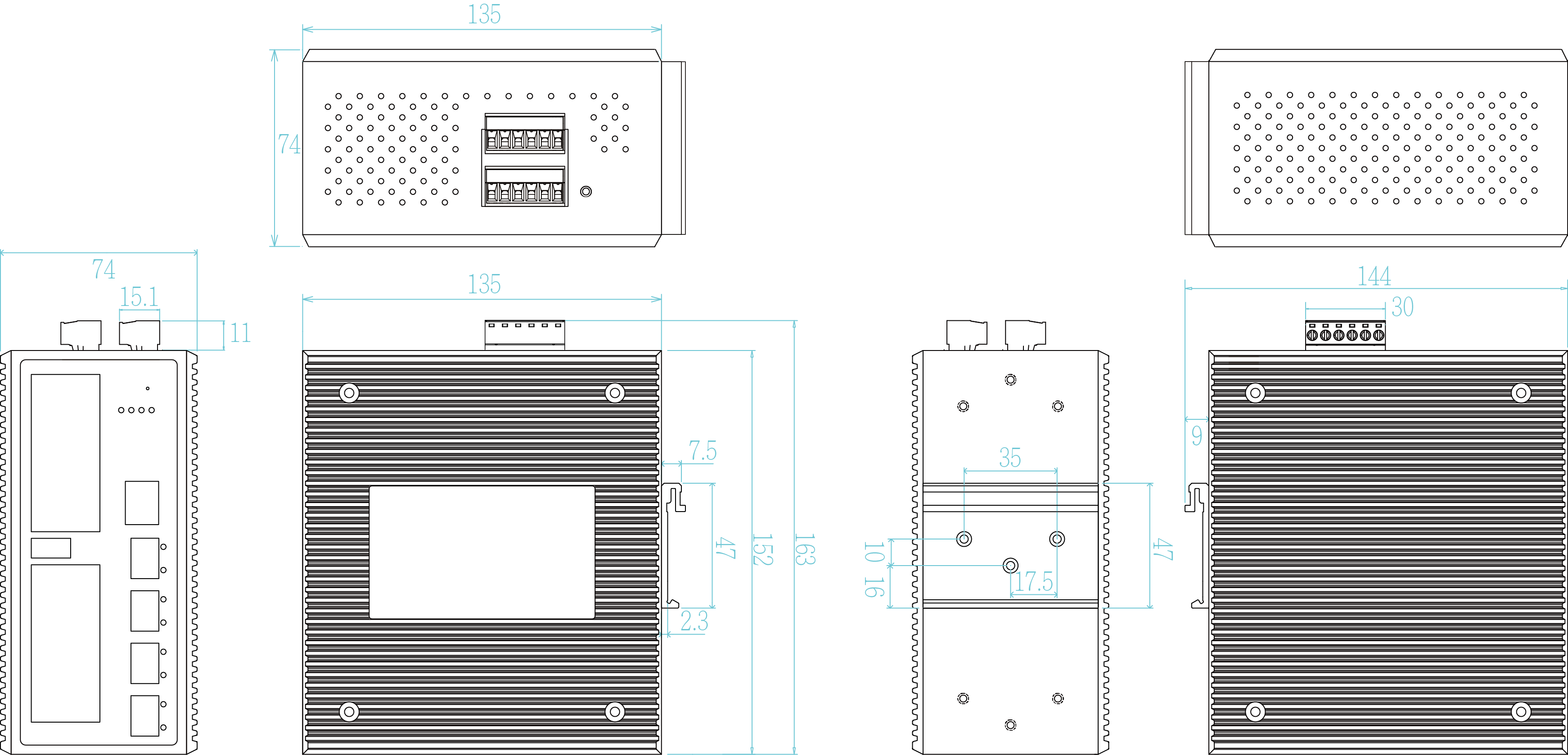 Dual DC input, 44~56VDC with Ethernet galvanic isolation (48V model);