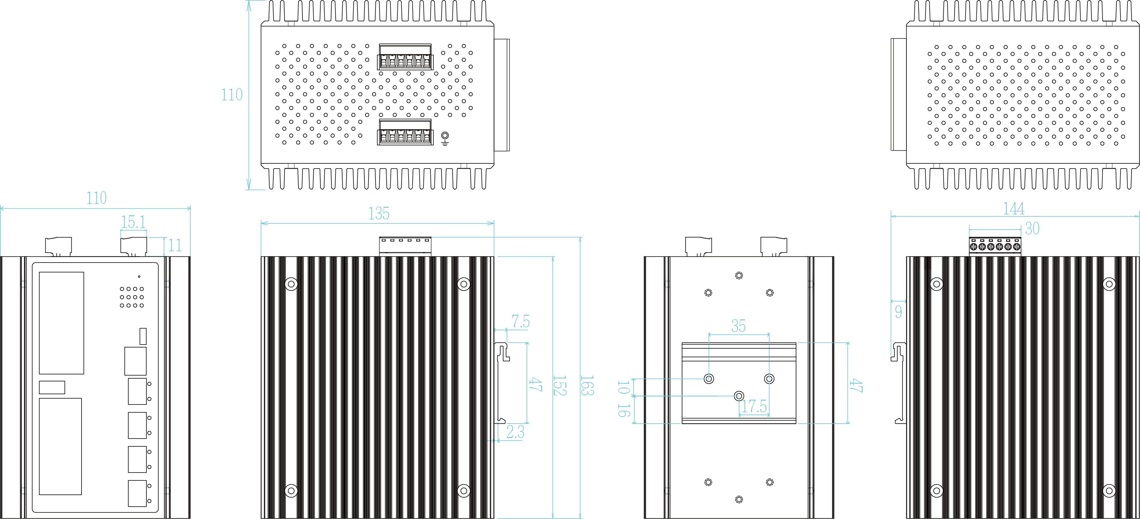 110 (W) x 135 (D) x 152 (H) mm (PoE model)