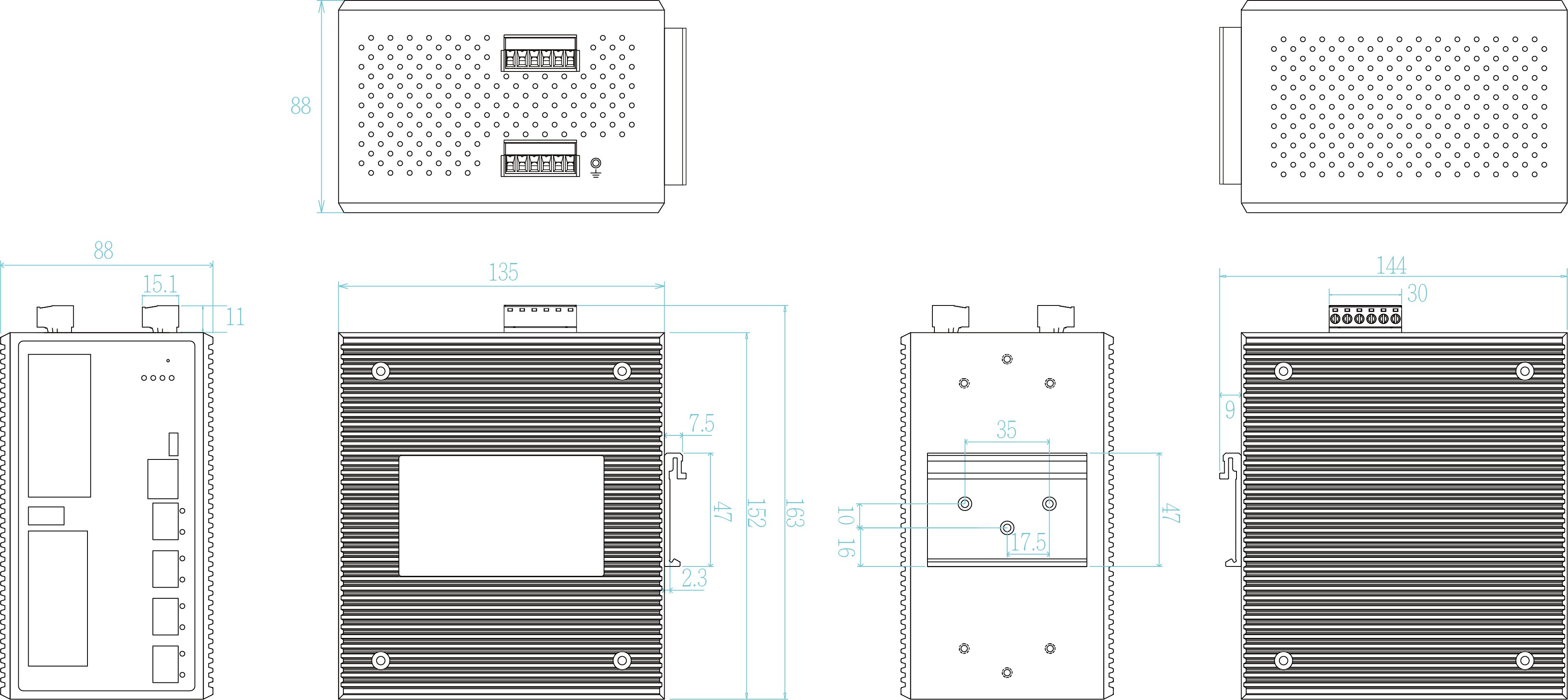 88 (W) x 135 (D) x 152 (H) mm (Non-PoE model)