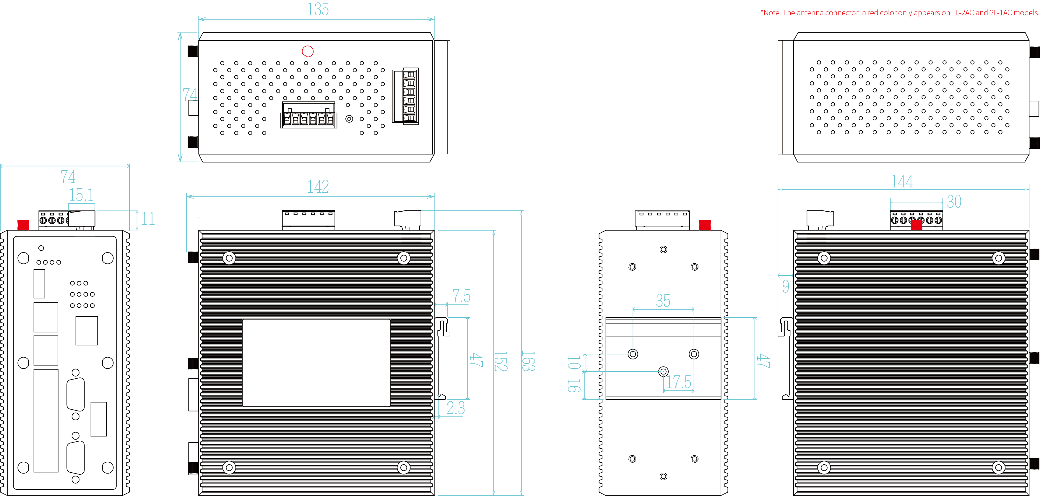 • 6 SMA type connectors for WiFi & LTE, GPS