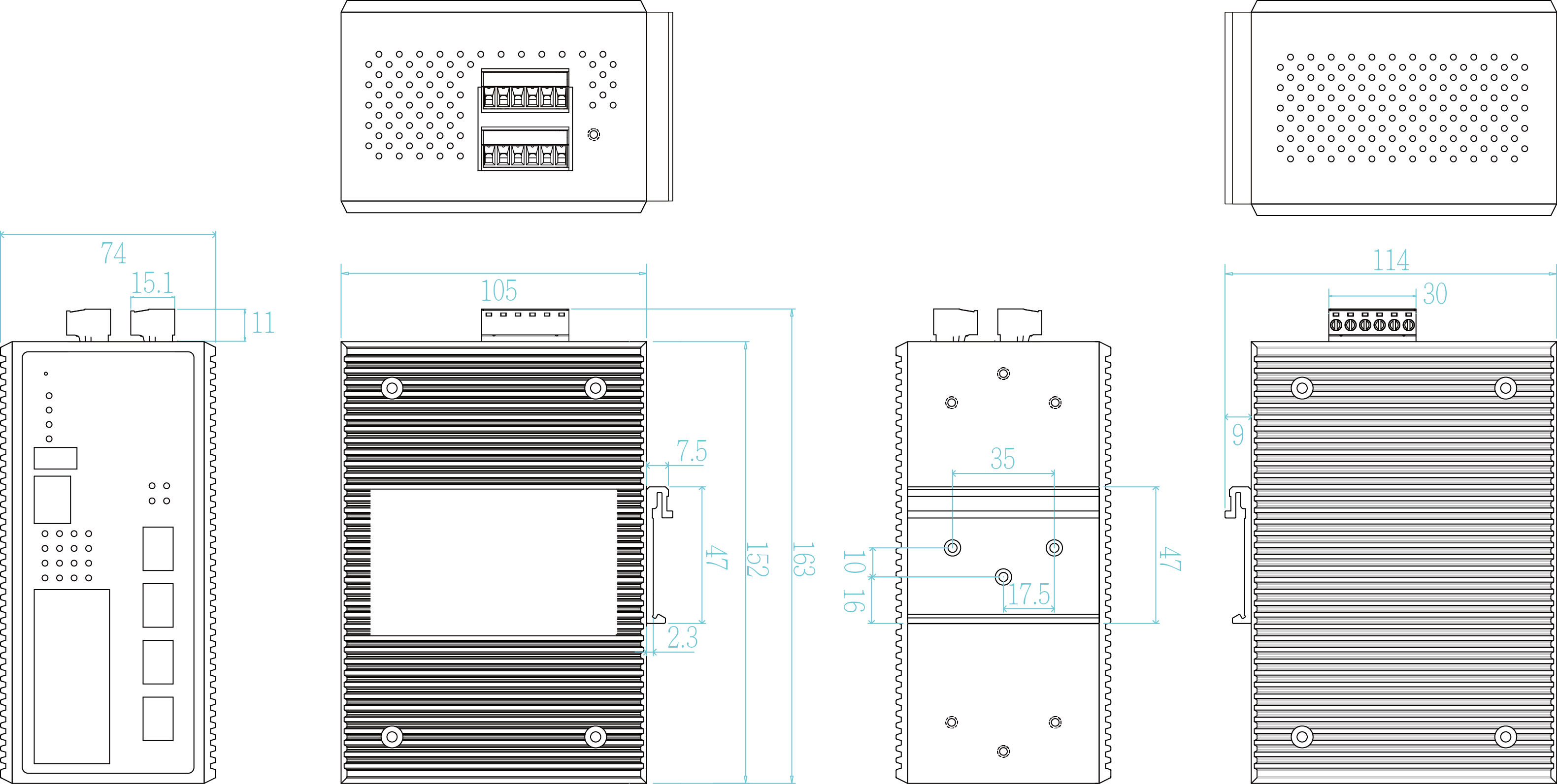 • IP30 metal housing with DIN rail and Wall-mount** design