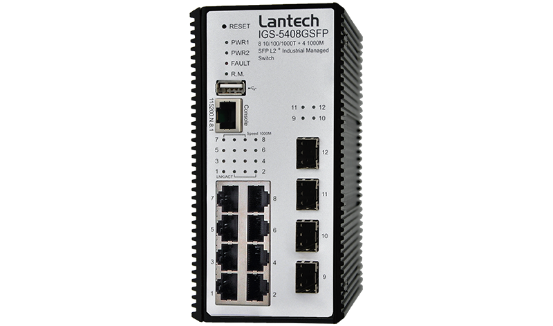 Lantech IGS-5408GSFP features high reliability and robustness coping with extensive EMI/RFI phenomenon, environmental vibration and shocks usually found in factory, substation, steel automation, aviation, mining and process control. It is the best solution for Automation, transportation, surveillance, Wireless backhaul, Semi-conductor factory and assembly lines.