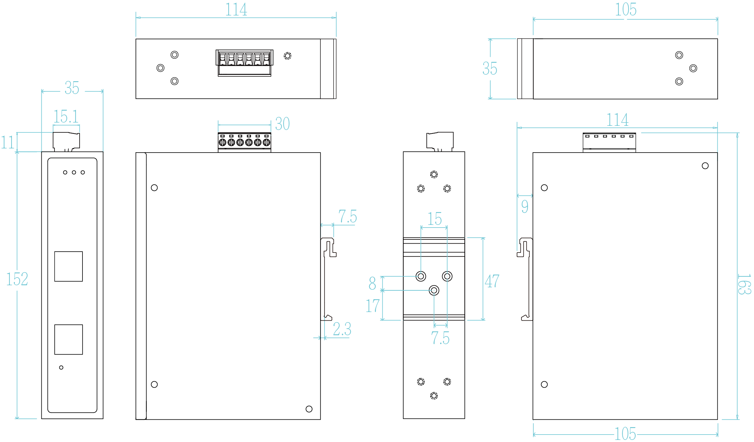 - Metal Housing with DIN Rail and Wall Mount** Design