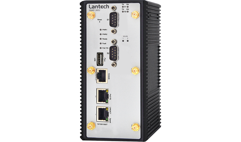 Lantech IWAP-3002 series is a next generation industrial multi-function VPN router w/up to 2x 802.11ac Wi-Fi + 2x Gigabit Ethernet (incl.1 PD**) + 2 serial ports** that supports advanced function of VPN, Load-Balancing, EMMC Flash storage**, Protocol gateway(Modbus), and Wi-Fi roaming. The dual core CPU with 1.6GHz + 256M flash enables the router to multi-task smoothly.