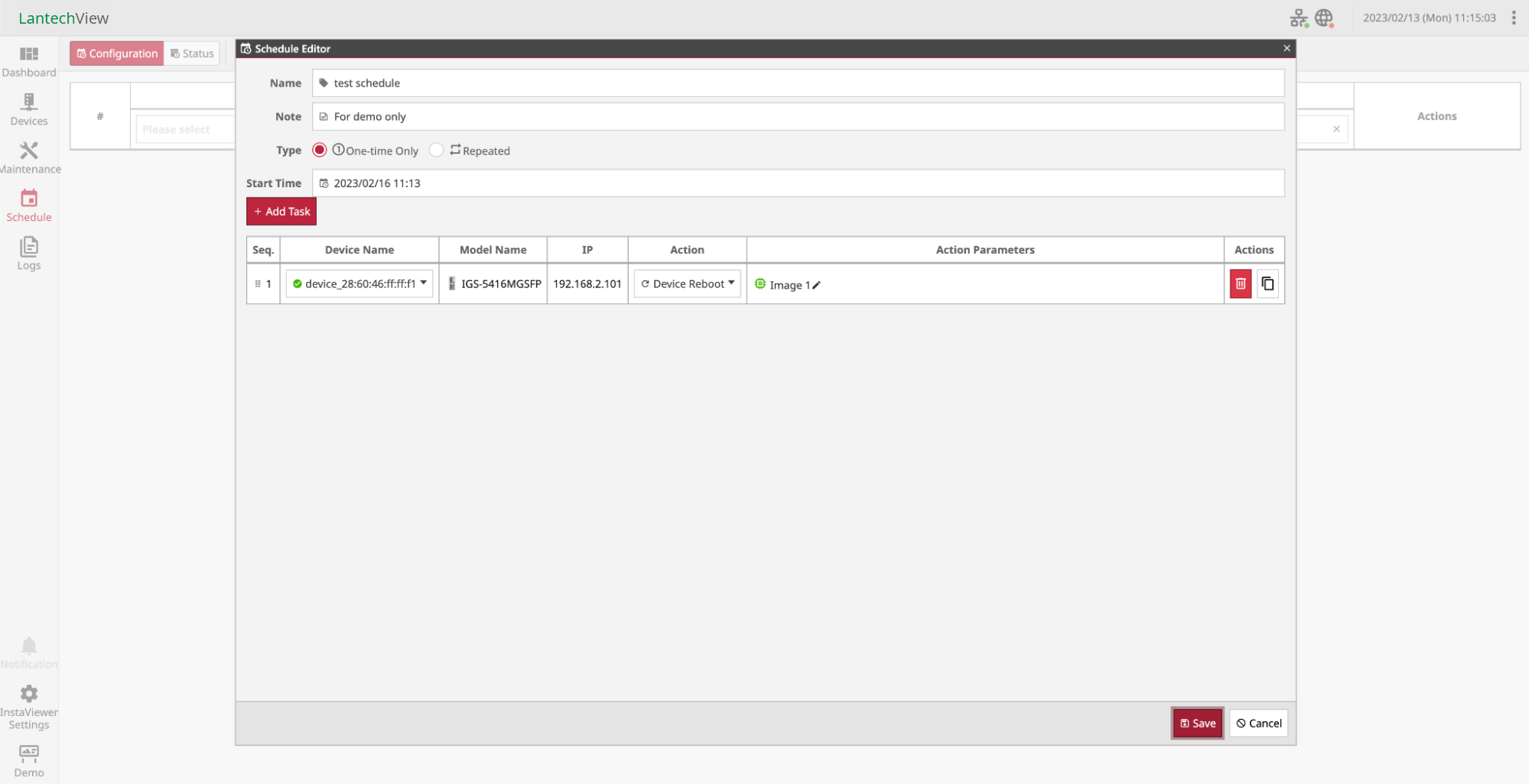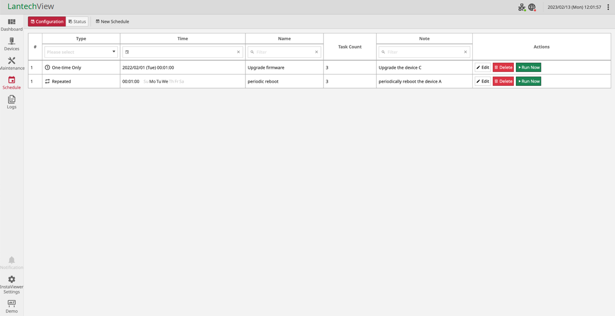 Schedule Routine Maintenance Tasks for Reboot/Upgrade/Backup Lantech devices’ Configurations (LantechView version)