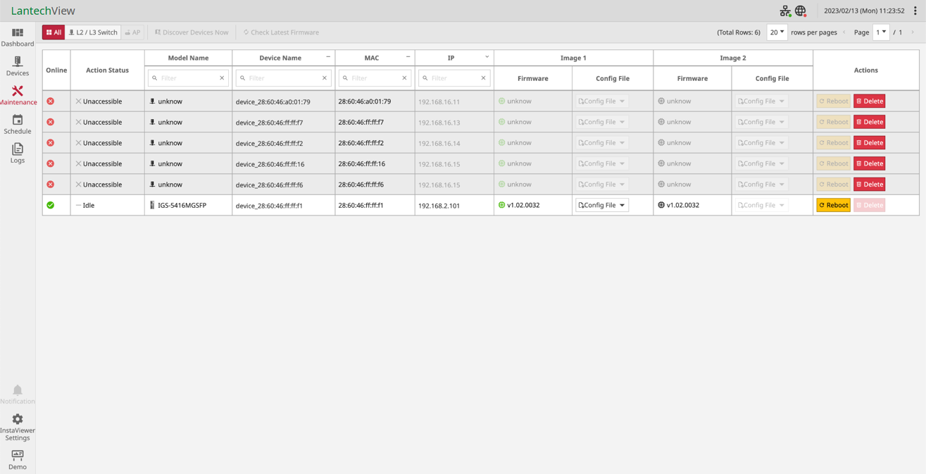 The LantechView automates firmware management, allowing administrators to easily check for and apply the latest firmware releases. It also enables batch firmware upgrades across multiple Lantech devices in a single operation, ensuring that all network components are consistently and uniformly updated. This streamlined process enhances efficiency and reduces the risk of errors during firmware updates.
