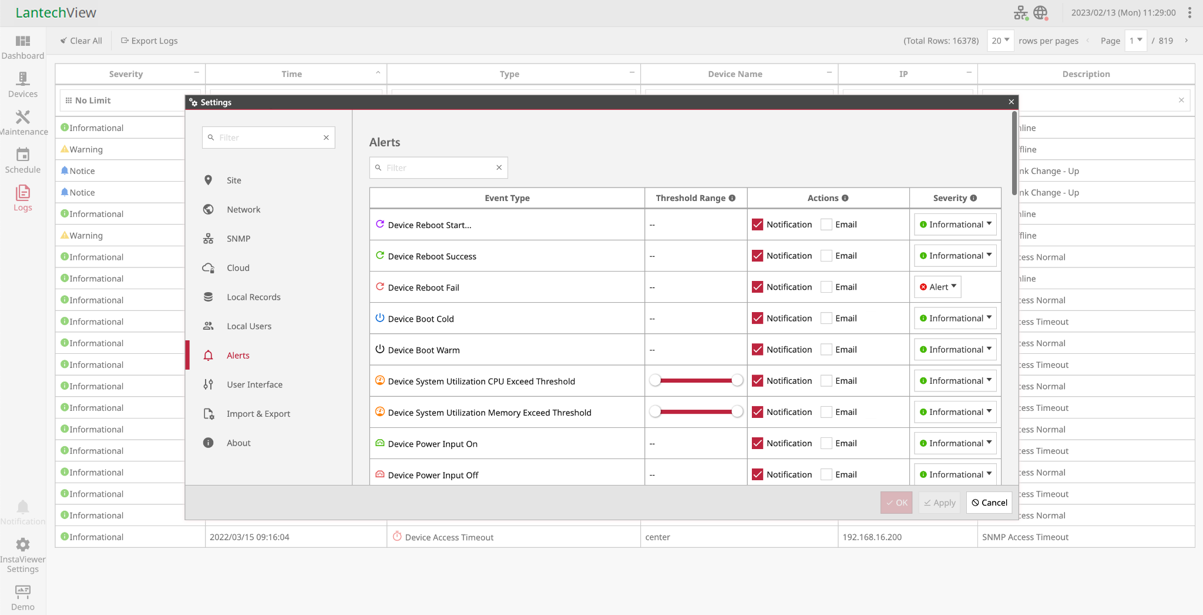 • Alert setting (LantechView version)