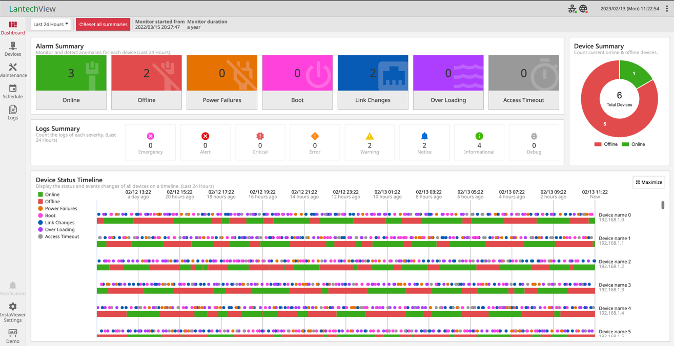 • Lantech Device status monitoring chart and maintenance