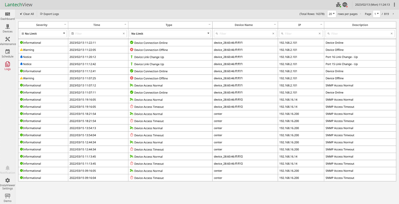 • Event Logs (LantechView version)