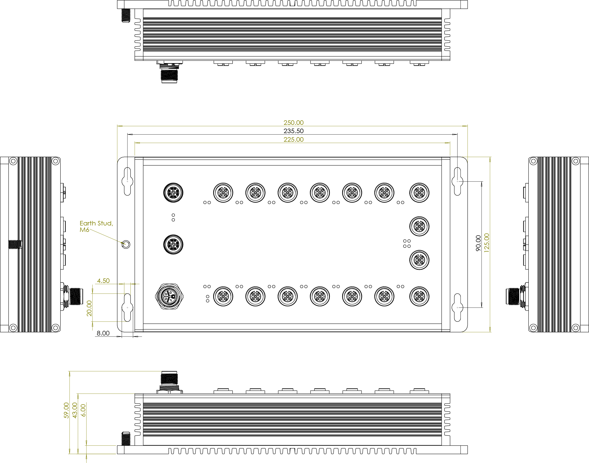 250mm(W)x125mm(H)x59mm(D) (PoE models)