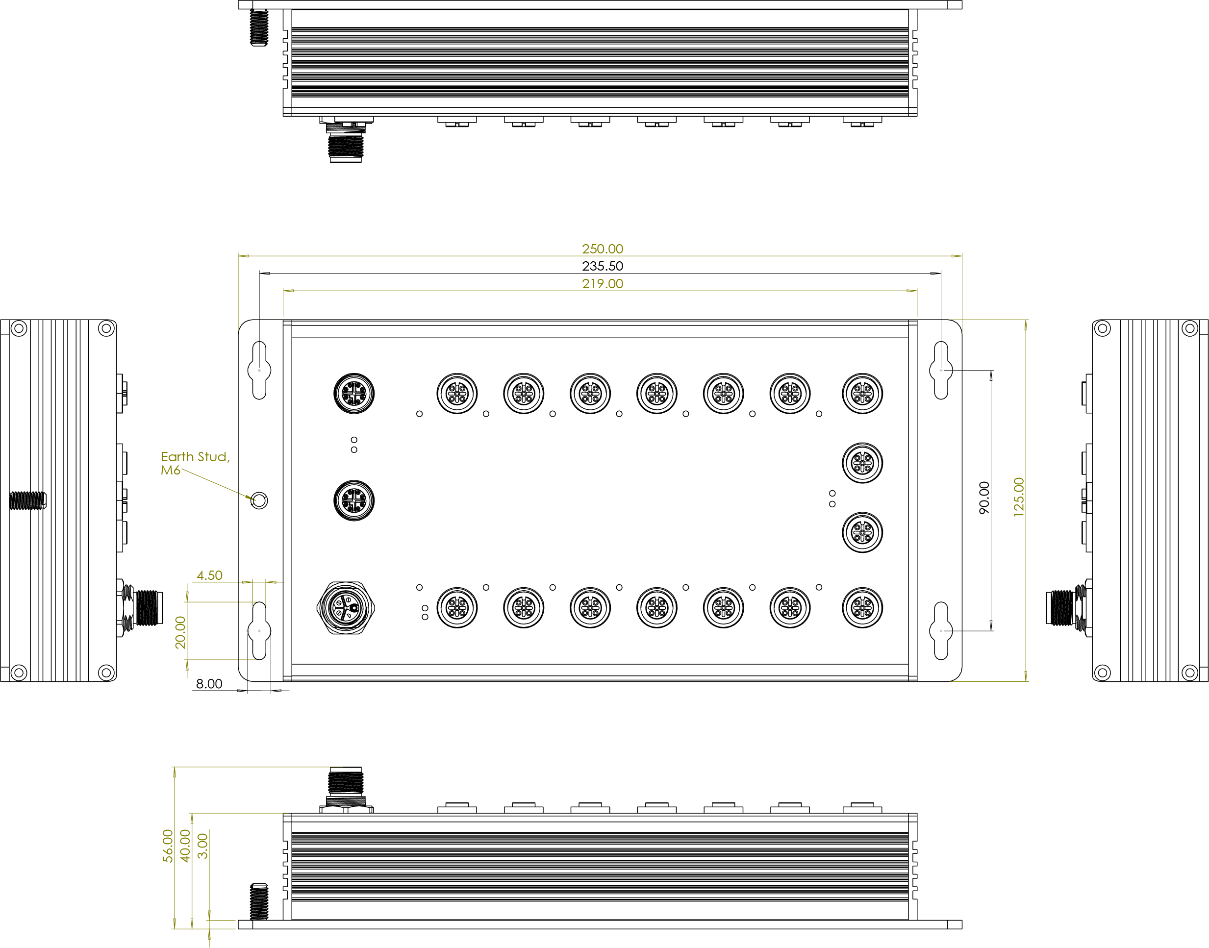 16 FE + 2 GE (PoE) M12 Unmanaged Ethernet Switch