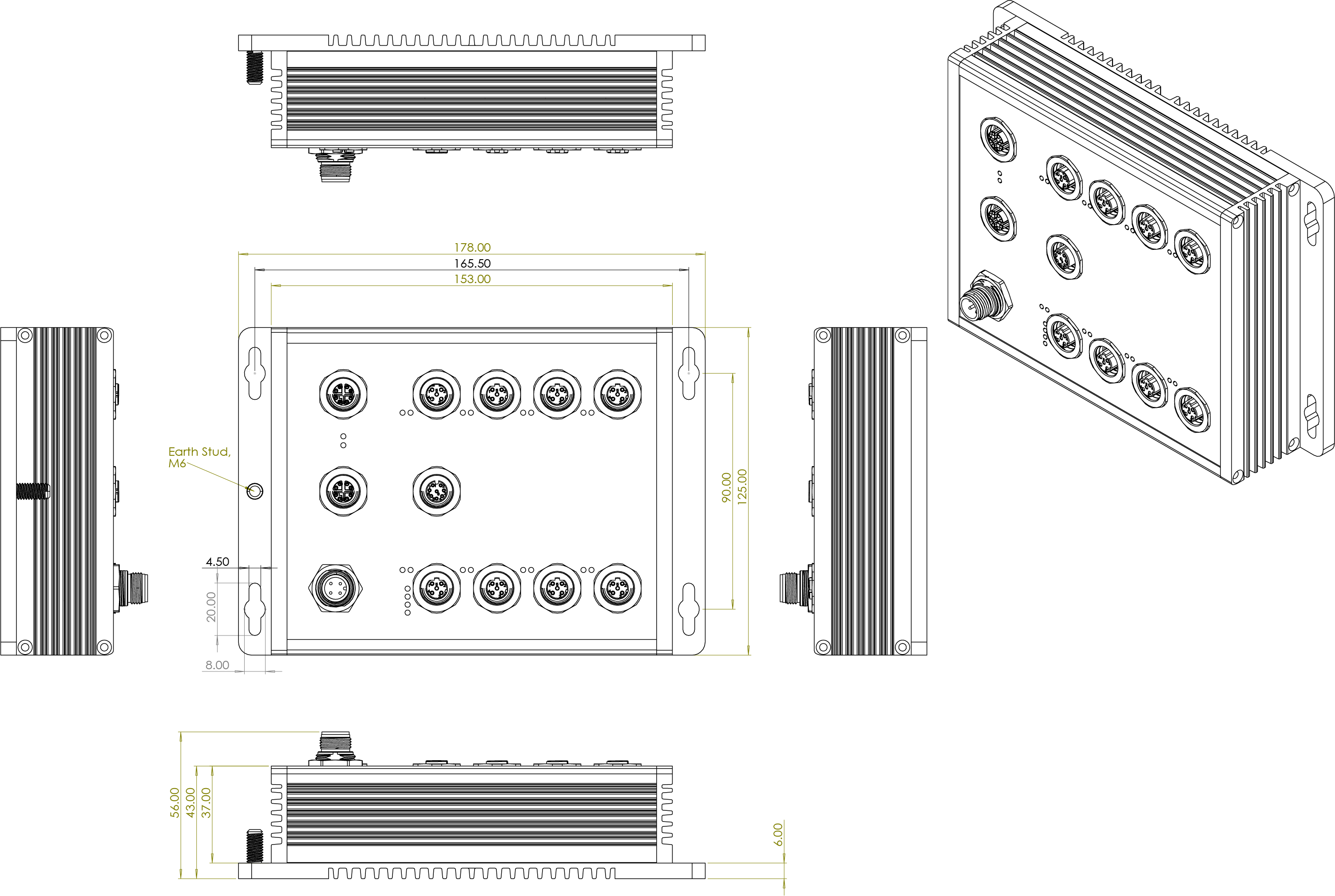 Power Input connector: 1 x M12 4-pole Male A-coded