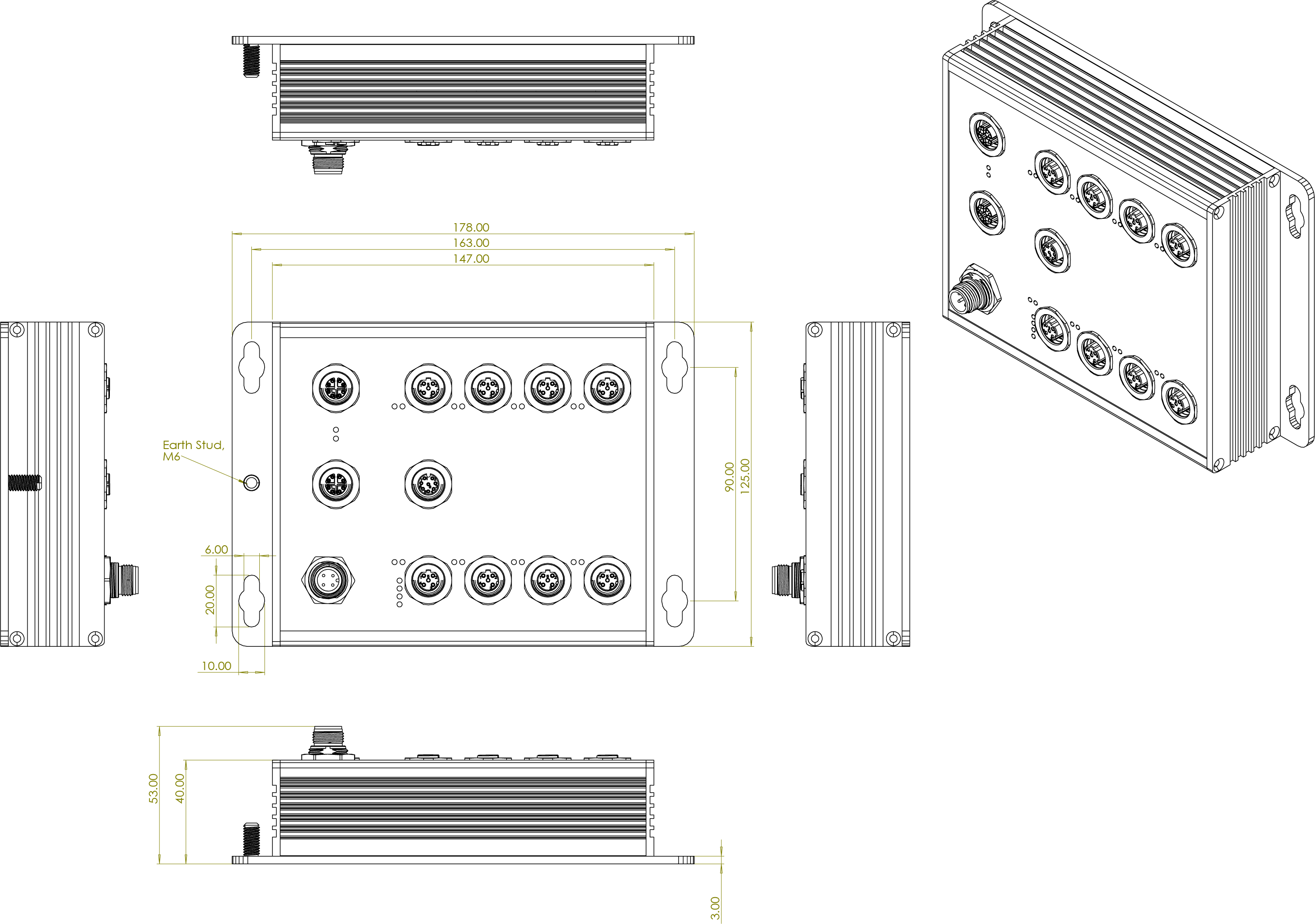 178mm(W)x125mm(H)x53mm(D) (Non-PoE models)
