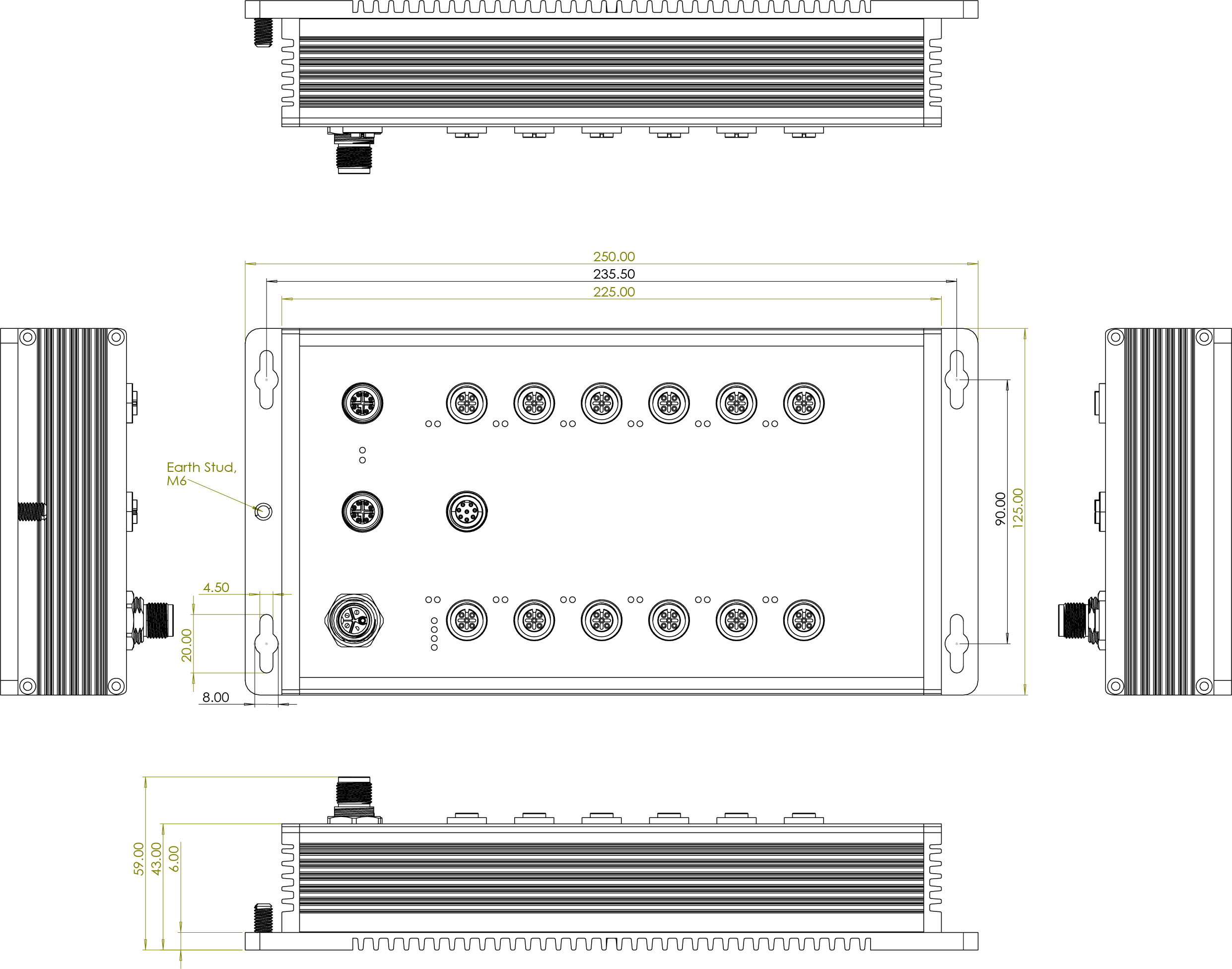 Power Input connector: 1 x M12 5-pole Male K-coded