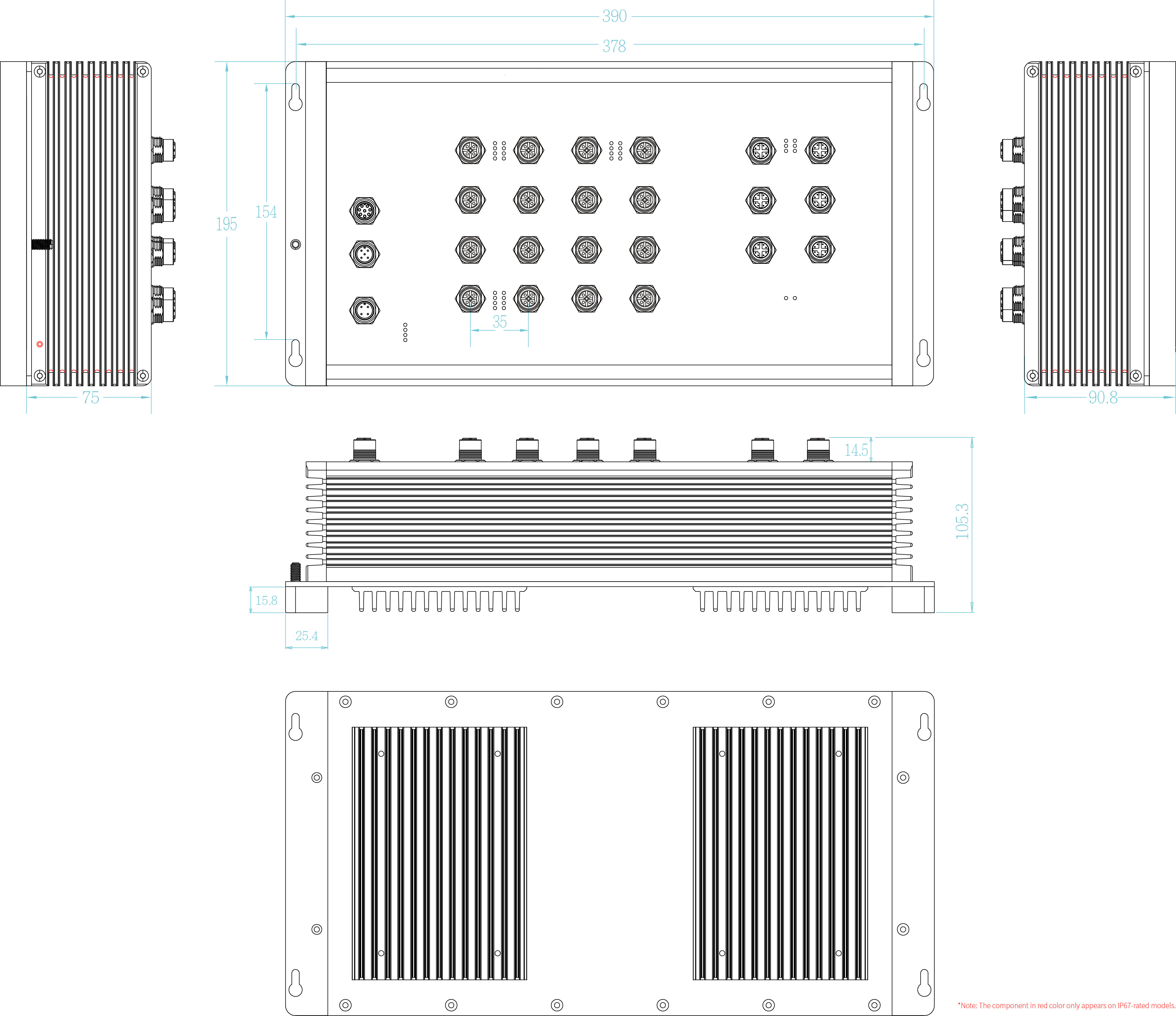 The switch is designed to meet with critical network environment with IP21 aluminum enclosure and M12 connectors for water proof. The switch passed serious tests under extensive Industrial EMI and Safety standards. With EN45545-2 Fire & Smoke and EN50155 verification, it is best switch for railway on-board/track side, vehicle, and mining applications. For more usage flexibilities, the switch supports wide operating temperature from -40°C to 70°C (85°C operation for 10min), which is compliant with the EN50155 Operating Temperature Range Requirement Class OT4.