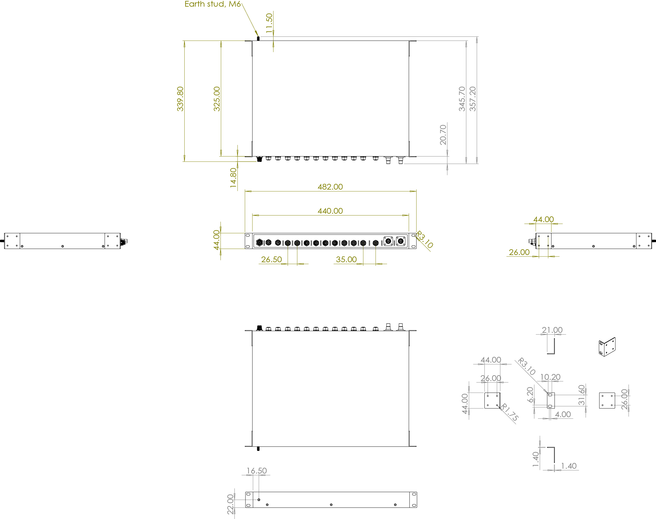 IP41 Aluminum alloy case 440mm(W)x44mm(H)x357.2mm(D)