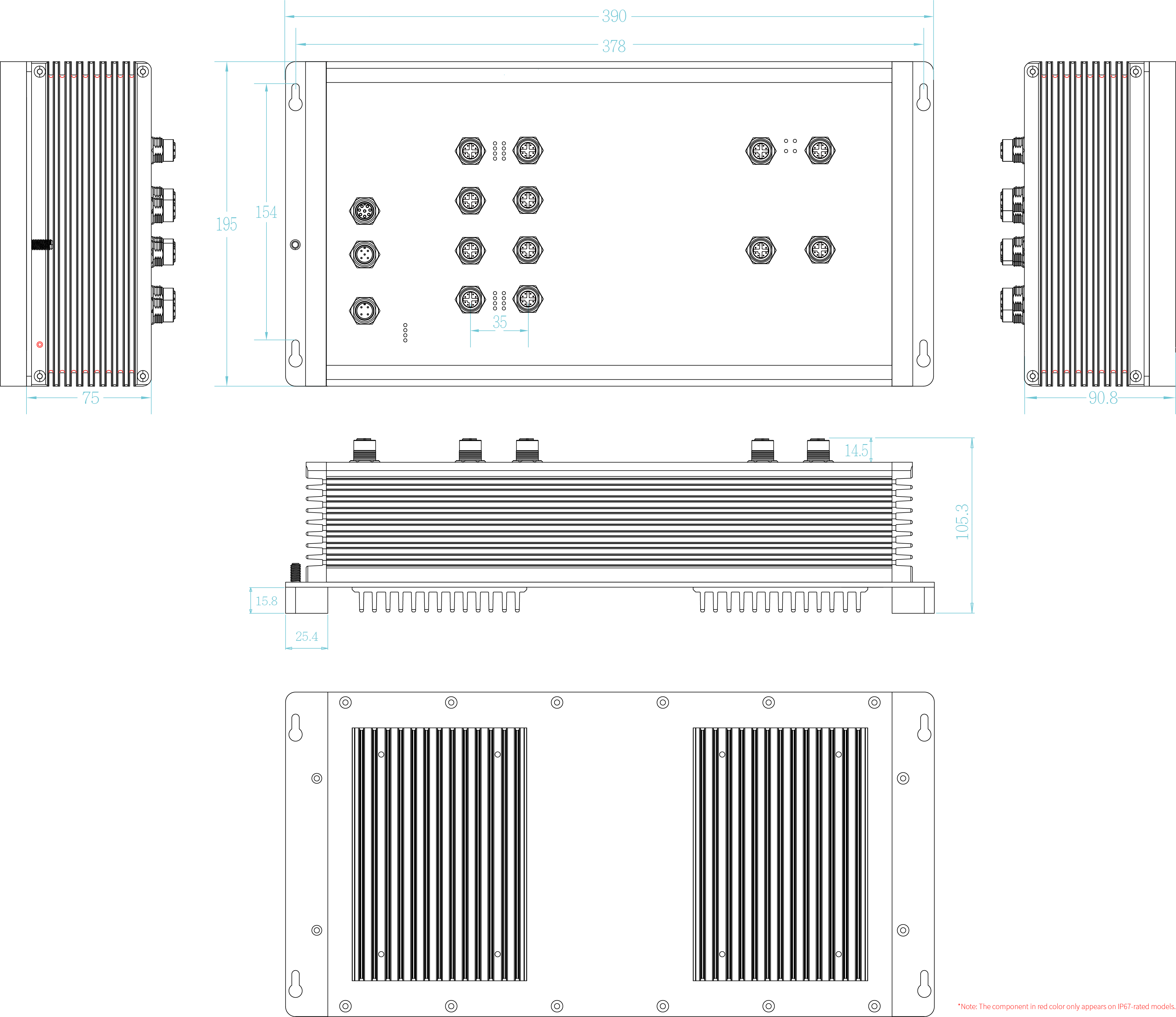 The switch is designed to meet with critical network environment with IP67/IP54 aluminum enclosure and M12 connectors for water proof. The switch passed serious tests under extensive Industrial EMI and Safety standards. With EN45545-2 Fire & Smoke and EN50155 verification, it is best switch for railway on-board/track side, vehicle, and mining applications. For more usage flexibilities, the switch supports wide operating temperature from -40°C to 70°C (85°C operation for 10min), which is compliant with the EN50155 Operating Temperature Range Requirement Class OT4.