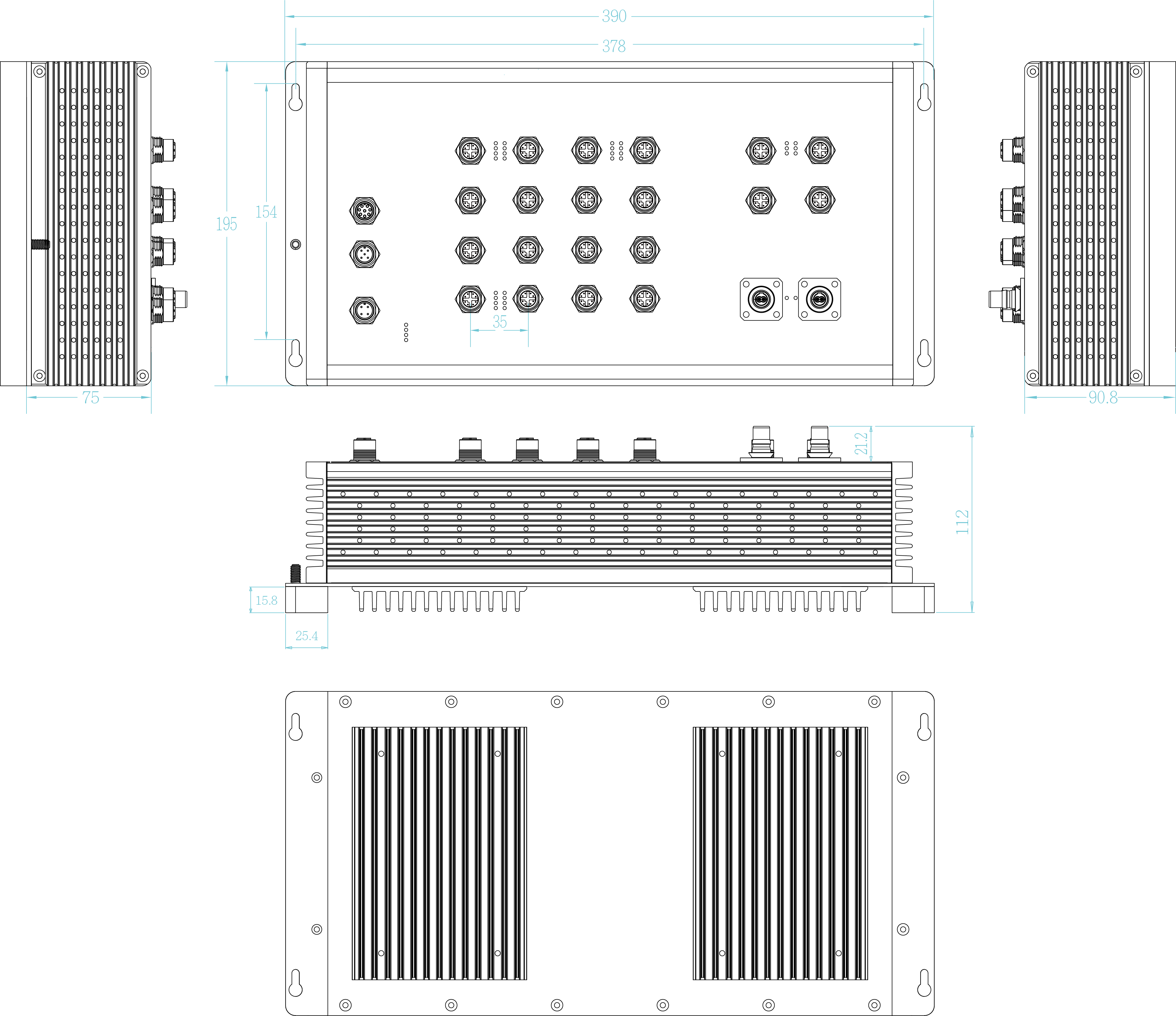1G/2.5G/5G/10G Copper: 4x M12 8-pole X-coded port 9-12