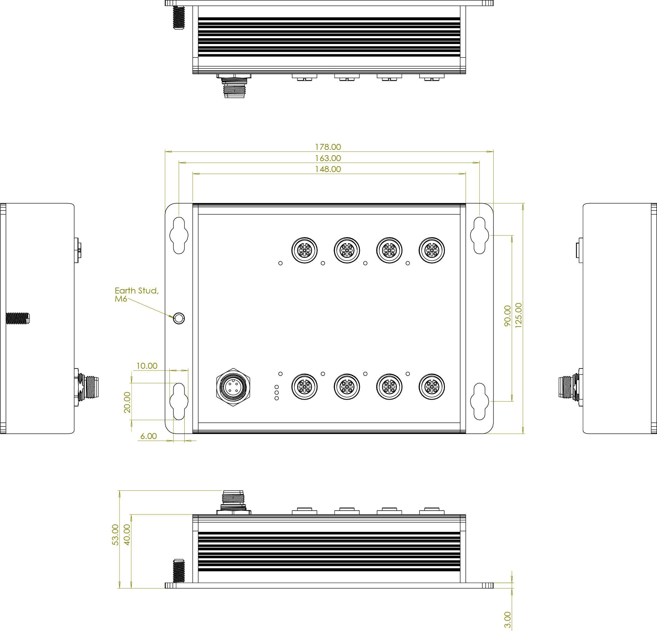 | TES-0008D-54-24VI-IGN-E | 8 10/100TX IP54 rated unmanaged Ethernet Switch w/M12 connectors w/Ethernet galvanic isolation; 9~36VDC dual power inputs; -40°C to 70°C w/ignition |