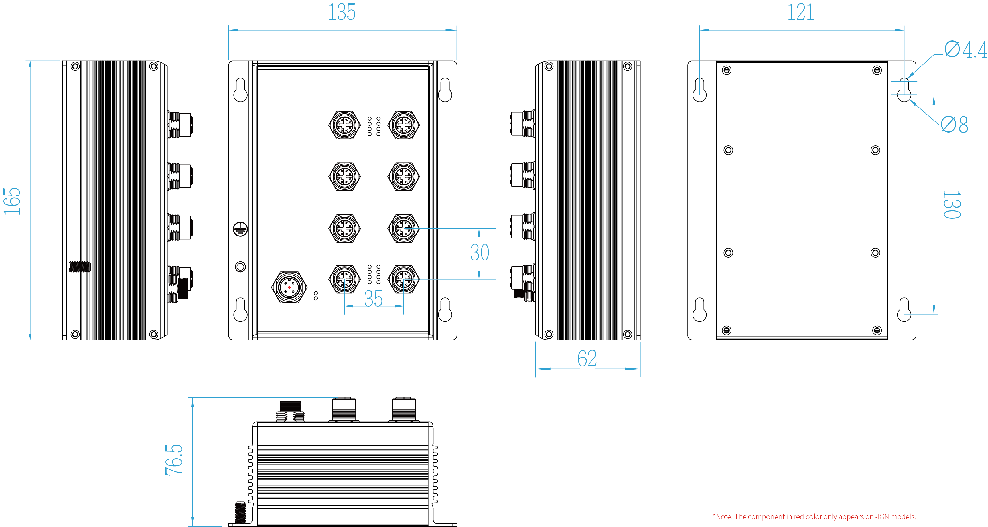 1 x M12, 5-pole A-coded, Male (-IGN model)